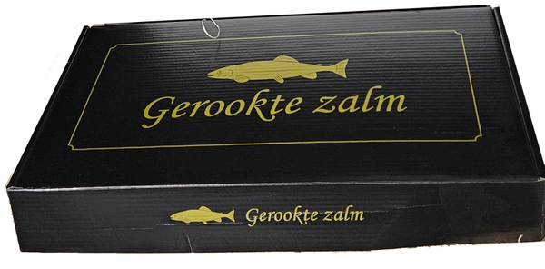 Bestel hier uw Zalm 2025 pakketten in een zwarte luxe doos met gouden bedrukking "Gerookte Zalm". Aflevering eind december in overleg. Fraai verpakte hele zijde gerookte zalm (citroen-peper of naturel), fles Chardonnay, alles in een bedje van houtwol. Gratis geleverd vanaf 10 stuks. Of via PostNL bij al uw relaties. U hoeft alleen de lijst met adressen te mailen en de extra verzendkosten te betalen. Prijzen zijn excl.: ivm BTW uitsplitsing (9% en 21%) ontvangt u de factuur achteraf. Nu ook met snijplank verkrijgbaar. Heeft u zelf wensen of aanvullingen, dan helpen we u daar graag bij. Zalm met wijn € 45,-, Zalm met snijplank € 54, Zalm met wijn en snijplank € 59 excl BTW. Vanaf 10 pakketten is op de snijplanken uw logo laseren mogelijk.